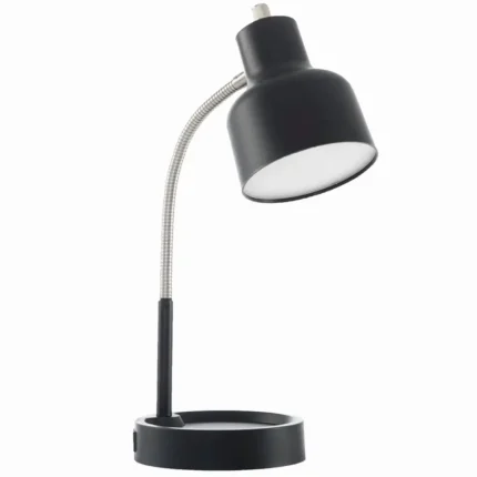 ZYLER- Led Desk Lamp With Catch-All Base & Ac Outlet Metal Gooseneck For Bedside Tables